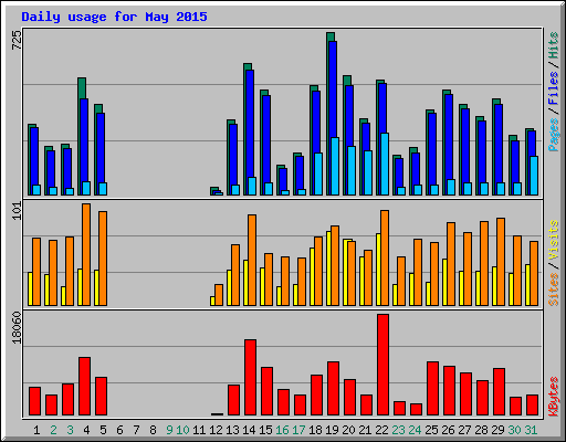 | Day | Hits | Files | Pages | Visits | Sites | KBytes | ||||||