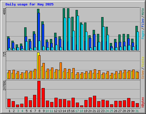 | Day | Hits | Files | Pages | Visits | Sites | KBytes | ||||||